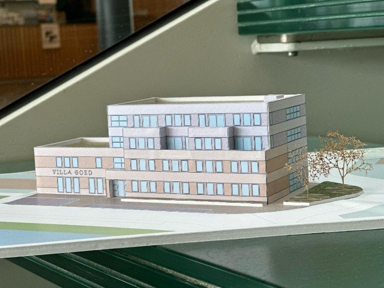 Villa Goed (Goed Onder Eén Dak) bouwt verder aan een warm, veilig en gezellig (t)huis voor jong volwassenen met een verstandelijke beperking. Batenburg Bouw & Ontwikkeling bezit een voor Villa Goed beoogde plek. VanEs Architecten uit Berkel en Rodenrijs heeft op verzoek van Batenburg een prachtige villa ontworpen. Alle inspanningen hebben één doel: het creëren van een fijne woonplek voor onze jongeren in Lansingerland. Na een tijdje ontwerpen en puzzelen is het moment daar; vijf van de toekomstige bewoners ontvangen de maquette van Wim en Marije van Es. Het ontwerp voorziet in zestien studio’s en gezamenlijke leefruimtes voor jong volwassenen van Villa Goed verdeeld over de begane grond en eerste verdieping. De twee bovengelegen etages worden uitgevoerd als moderne middenhuurappartementen, een woningtype waar ook veel vraag naar is binnen onze gemeente voor de huisvesting van onze jongprofessionals.